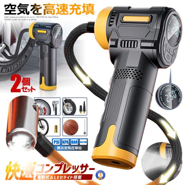 2個セット 電動 エアーコンプレッサー 12V 空気圧 液晶 小型 強力 洗車 車 自動車 電動 空気入れ エアーポンプ ST5527 s-kk2409-61a