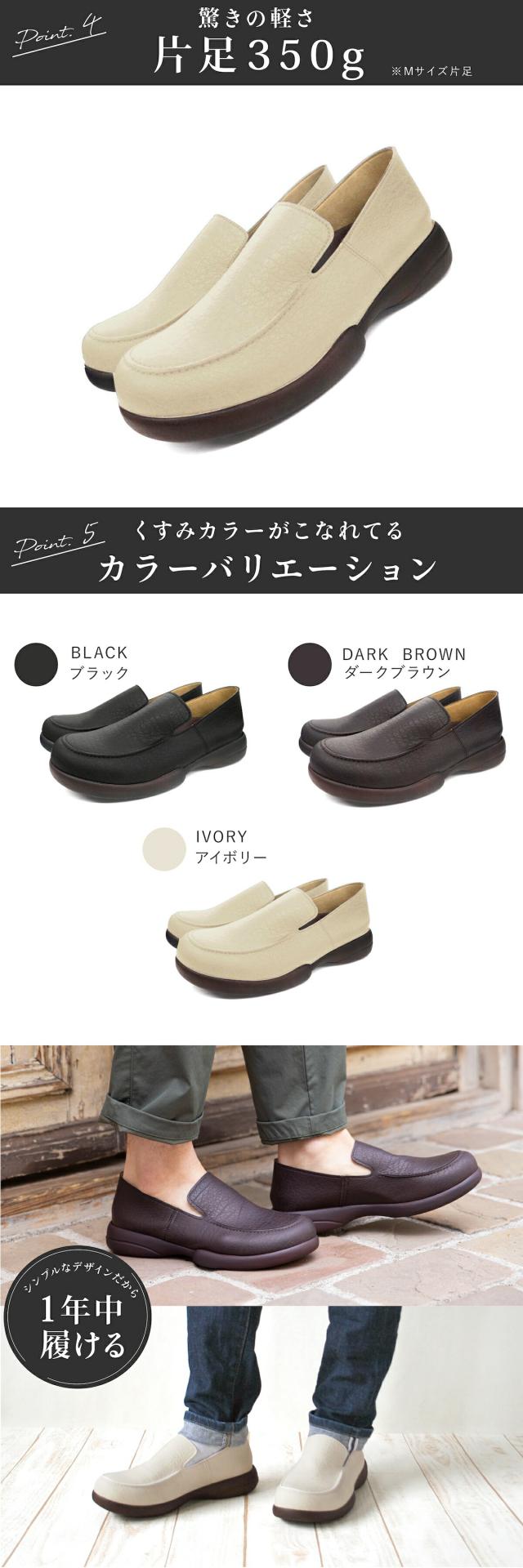 テレビ通販などでもお馴染みのリゲッタを代表するコンフォートシューズ。足への負担が軽減された特殊構造と、軽量で履きやすいデザインで仕事にプライベートに活躍する一足。