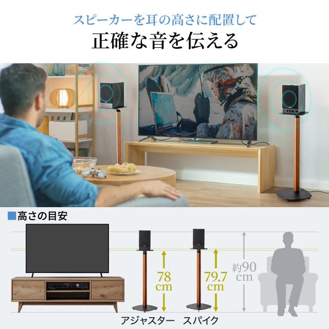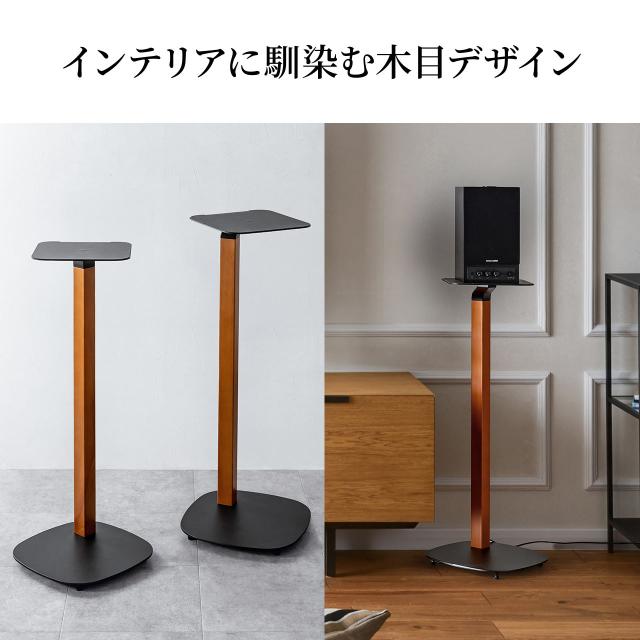 スピーカースタンド 木目調デザイン 耐荷重10kg 高さ78cm スパイク型アジャスター付き ペア 2本セット 金属製 フロアスタンド ブラック&木目[100-SPSTN07M]