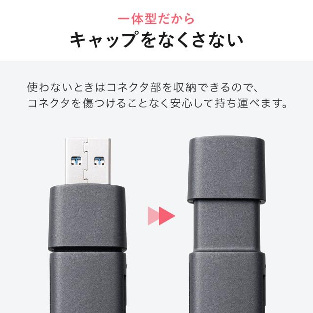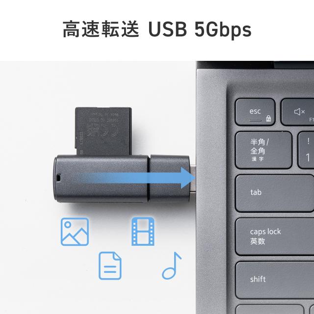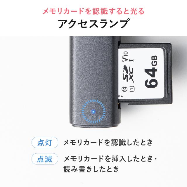 USB A カードリーダー スライド式 キャップ SDカード microSDカード USB5Gbps コンパクト ガンメタリック[400-ADR335GM]
