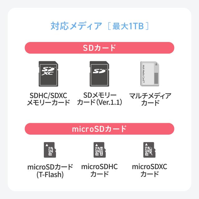 ●SDカード/microSDカードは最大で1TBの容量に対応します。