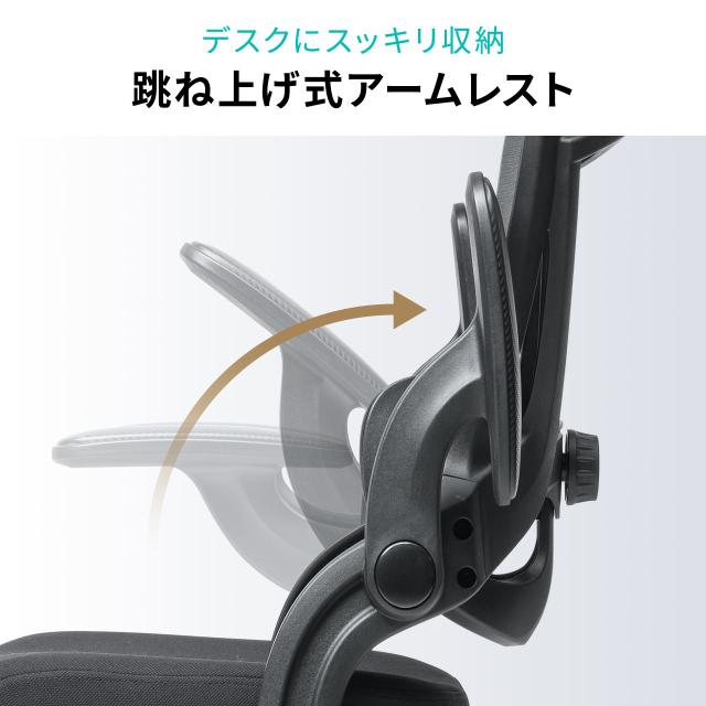 ●デスクにすっきり収納できる跳ね上げ式アームレストです。