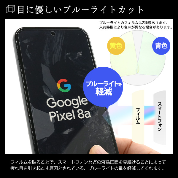 Google Pixel 8a用 液晶保護ブルーライトカットガラスフィルム | ||||||||