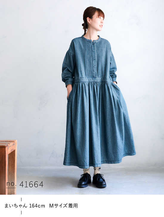 【ついに再入荷!】はちみつ堂 はちみつ堂のデニムワンピース レディース ロング フレア Aライン 長袖 ノーカラー