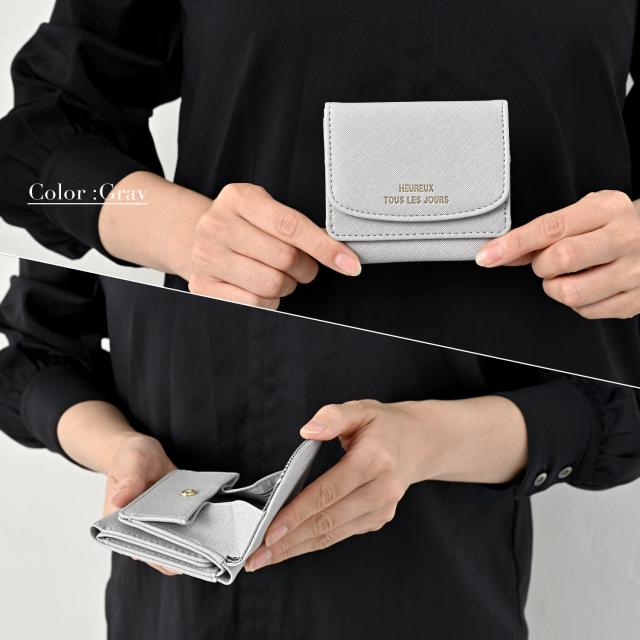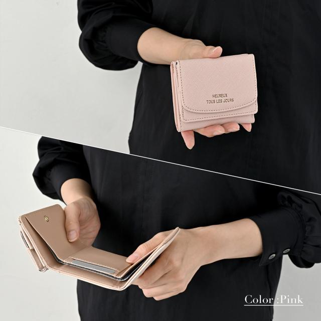 ミニ財布 レディース 三つ折り 財布 コンパクト シンセティックレザー 薄い スリム 軽量 軽い 小銭入れ カード たくさん入る 無地 シンプル おしゃれ かわいい