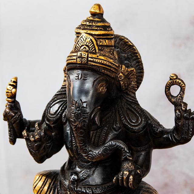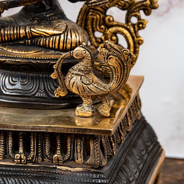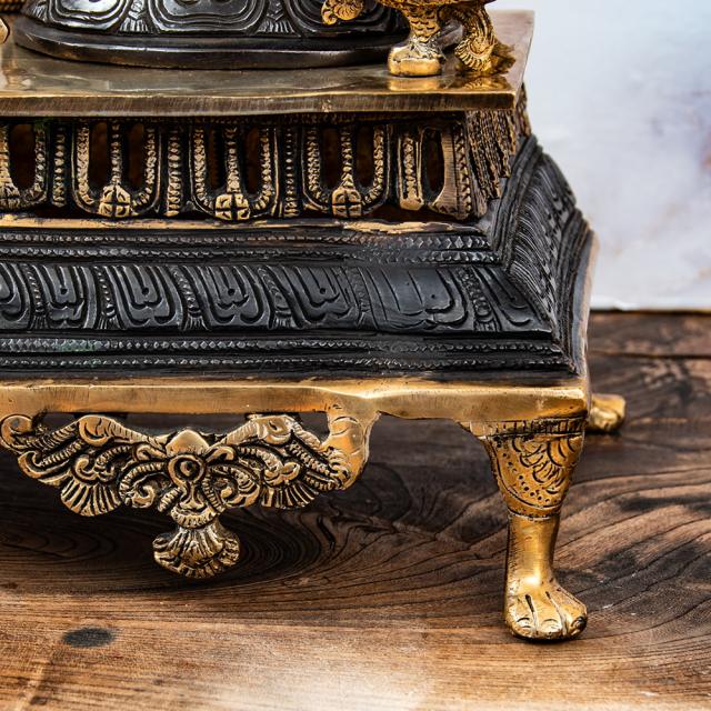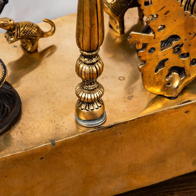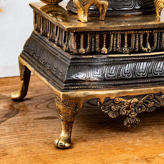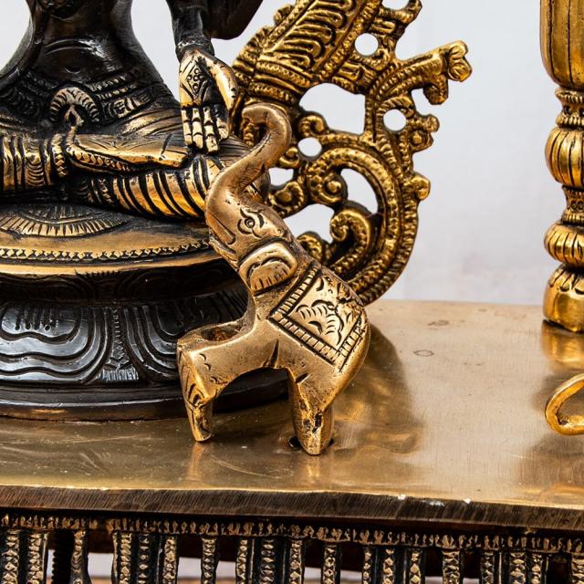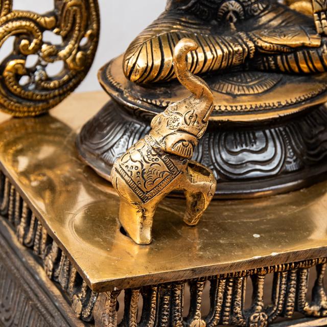 一般的にブラス像は、金属のベースの色である金色のみ単色の場合が一般的です。一方こちらは、神像を中心に黒く塗装が施しており、金色と黒のコントラストが美しく高級感があります。職人による丁寧な仕事が感じられる品です。