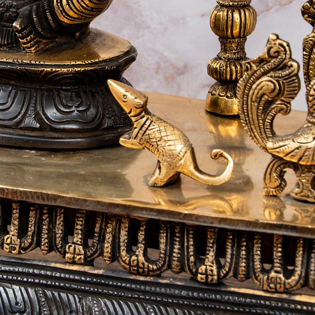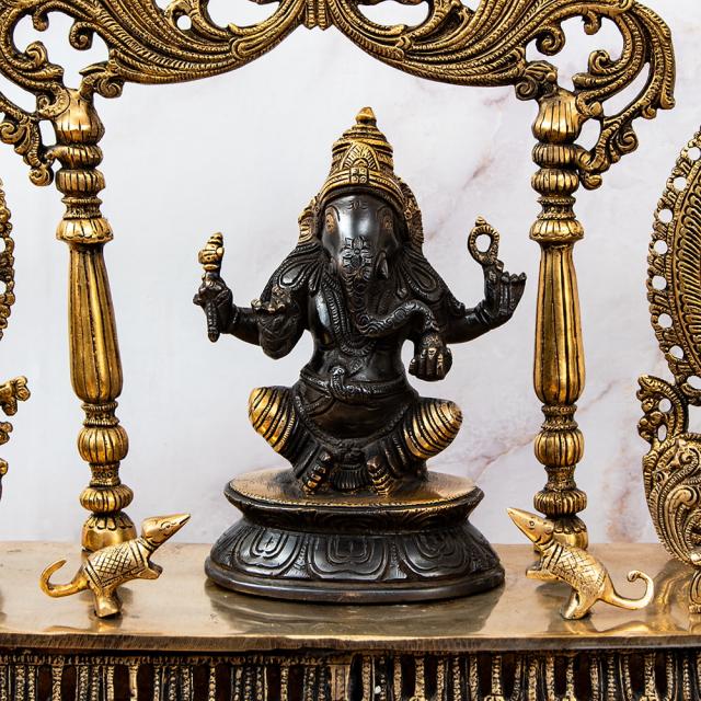 【1点物】真鍮黒塗仕上げ ガネーシャ・ラクシュミ・サラスヴァティ 三柱坐像祭壇 高さ59cm 21kg / ガネーシャ、ガナパティ、ラクシュミー、サラスバティ インドとアジア雑貨 【インドとアジアン雑貨