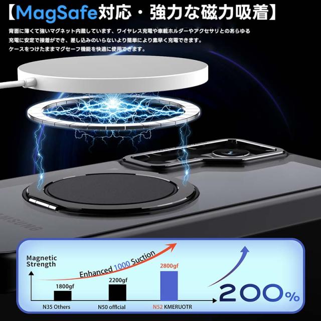 背面に薄くて強いマグネット内蔵しています、ワイヤレス充電や車載ホルダーやアクセサリとのあらゆる充電に安定で接着ができ、差し込みのいらないより簡単により素早く充電できます。ケースをつけたままマグセーフ機能を快適に使用できます。(こちらのスマートフォンケースを使用すれば、充電ケーブルを抜き差しする必要がなくなり、利便性を体感していただけます。また、MagSafeバッテリー、MagSafeカードケース、MagSafeワイヤレス充電器、MagSafeリング、MagSafeクリップ式車載ホルダーなど、Magsafeの使用シーンに対応したiPhone 15promaxスマートフォンケースとなっています。Magsafeによる利便性をお楽しみください!)
