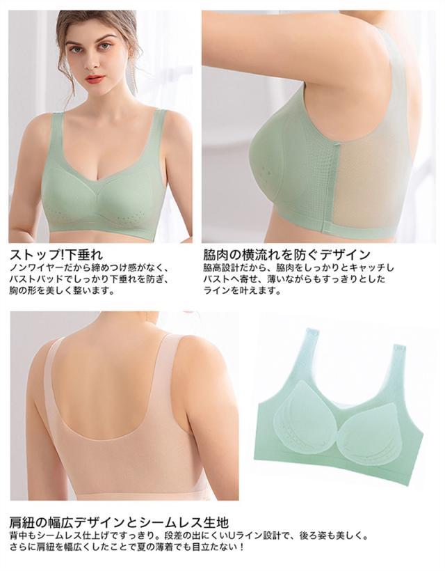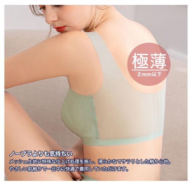 ブラジャー レディースブラ ナイトブラ ノンワイヤーブラ ノンワイヤー 育乳ブラ シームレス 冷感 ひんやり 通気 大きいサイズ 極薄 ホックなし 軽い 薄い ブラトップ 涼しい 快適 メッシュ カップ付き ナイトブラ 痛くない 締め付けない