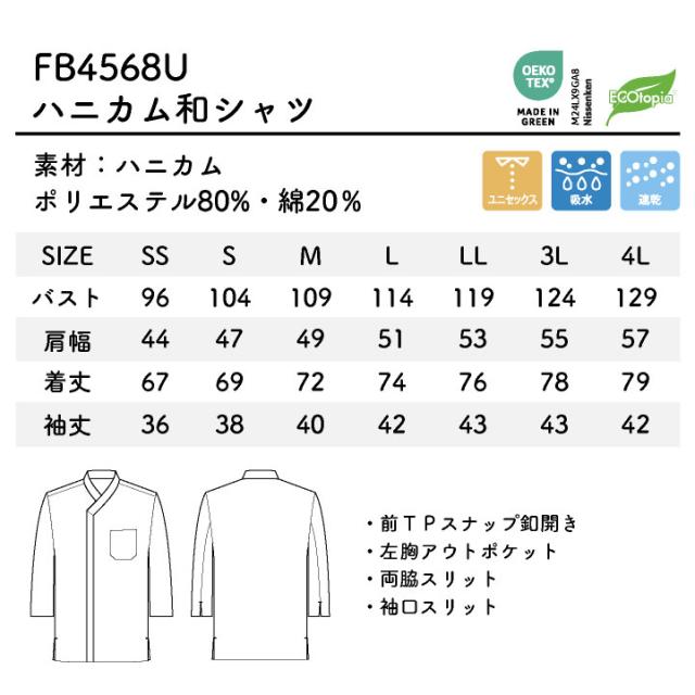 ボンマックス 和風 シャツ メンズ レディース 吸水 速乾 仕事服 おしゃれ ユニフォーム サービス 飲食 割烹 カフェ スパ bm-fb4568u
