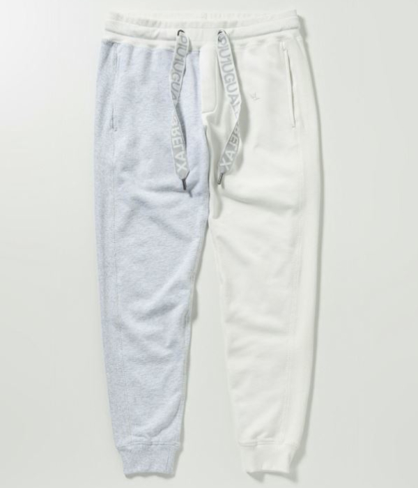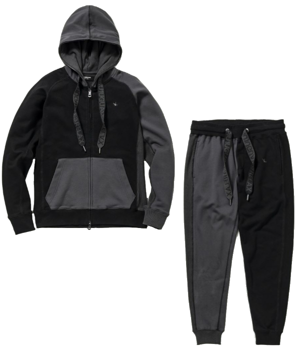 トーンオントーン系のクレイジーパターン配色で、上下アシンメトリー配色のセットアップとなります。
