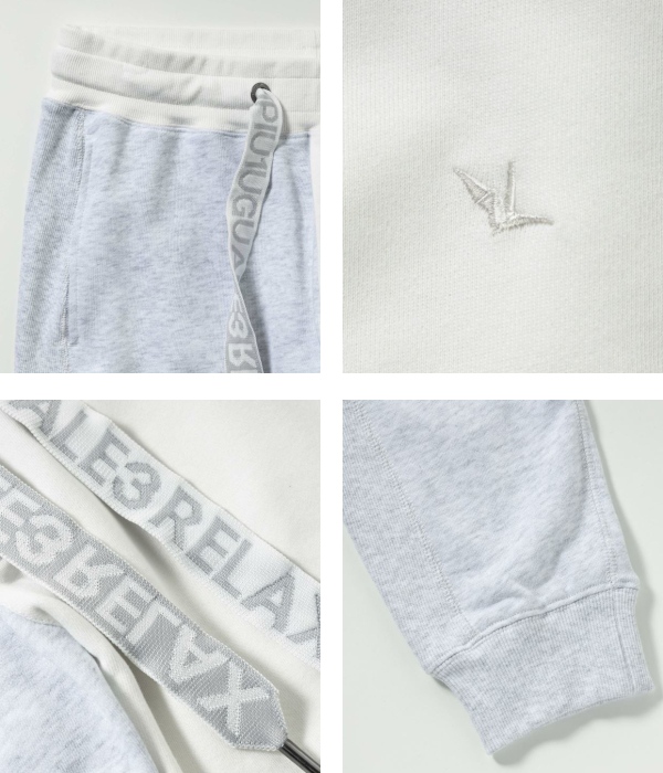 太めのジャガードロゴスピンドルがアクセントとなり、動くたびに揺れ動くロゴはコーデに遊び心を追加します。
