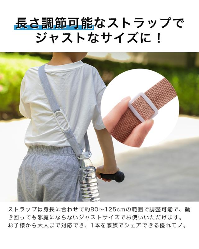 ペットボトルホルダー ショルダータイプは、登山やフェス、ウォーキング、ランニングなど、さまざまなアウトドアシーンで活躍します。軽量でシンプルなデザインが特徴で、大人から子供まで幅広くご利用いただけます。肩掛け可能なショルダー型で、500mlのペットボトルや水筒にも対応。2つのリングにより、さまざまなサイズのボトルをしっかりと固定できます。ストラップは長さ調節が可能で、男女ともに使いやすい落ち着いたカラーをご用意しています。テーマパークやアウトドアでの使用に最適なこのホルダーで、快適な時間をお楽しみください。