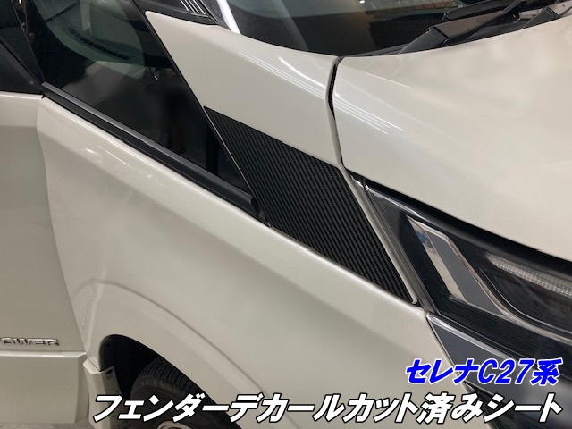 セレナC27系 フェンダーデカールカット済シート カーボン柄ブラック等カラー選択 ガソリン/e-power ヘッドライトサイド部分 カスタムパーツ アクセサリー