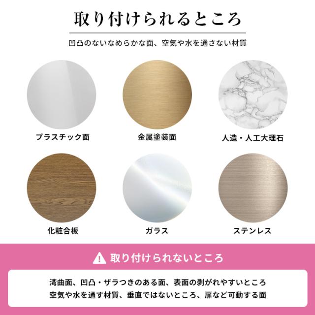 プッシュ式のホテルライクなアイテムです!シートは取付簡単、何度でも使える吸着タイプです。