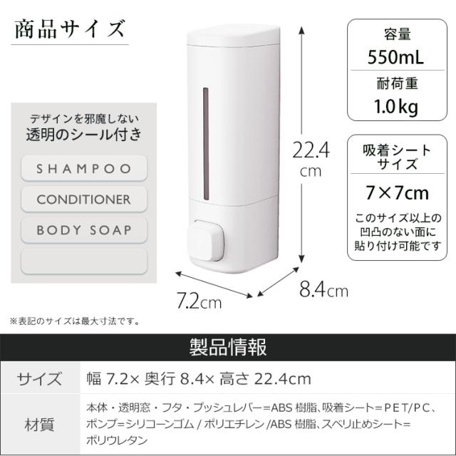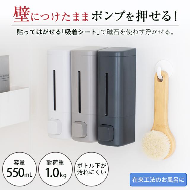 下から出てくる 吸着 シート ディスペンサー 550ml BP550 浮かせる収納 お風呂 おしゃれ アスベル ASVEL 詰め替え容器 リフィルボトル ボトル シャンプー