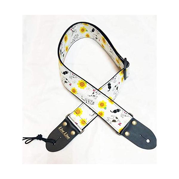 LiveLine ライブライン ネコ&ひまわり柄 50ミリ幅ギターストラップ LS2000CAT6