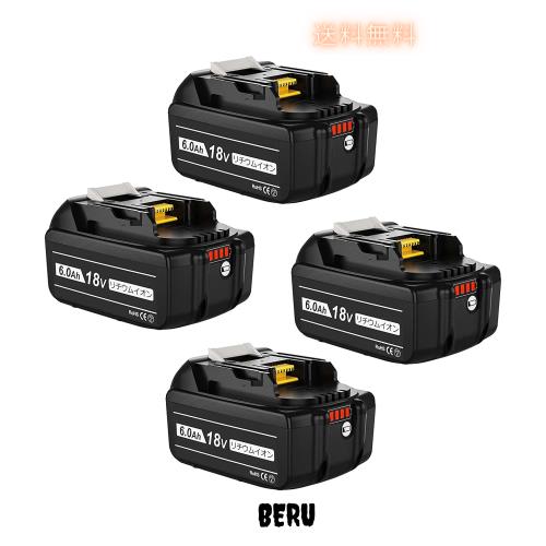 Boetpcr 互換 マキタ 18v バッテリー BL1860B 6000mAh大容量 4個セット マキタ 18v BL1815N BL1820B BL1840B BL1850B BL1860Bなどに対応