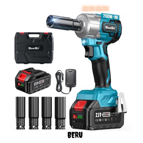 Seesii インパクトレンチ 電動インパクトレンチ タイヤ交換 700N・m 強力 ブラシレスモーター 小型ハイパワーインパクトレンチ 1/2”トル