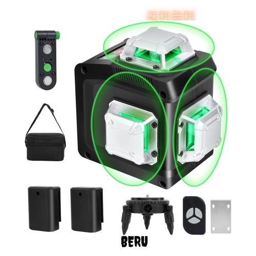 レーザー墨出し器、墨出しレーザー、3Dグリーンレーザー墨出し器、3x360°、水平器 レーザー ビルドとアライメント用、充電式バッテリー、リモコン、磁気回転スタンド レーザー安全基準:クラス2 12ライン