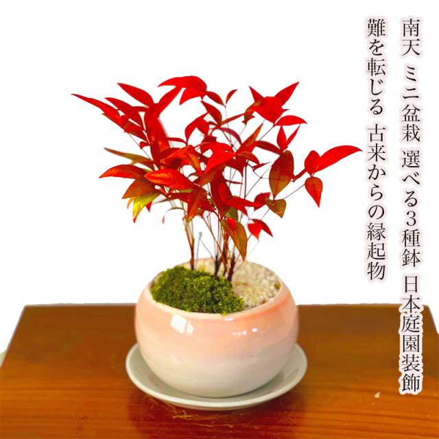 盆栽 南天 難を転じる縁起物 育て方ガイド同梱 ミニ盆栽 3色の選べる鉢色 苔植物 盆栽 ミニ 室内 初心者 還暦 フラワーギフト 誕生日 プレゼント 鉢植え ギフト シンボルツリー