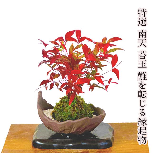 盆栽 南天 苔玉 難を転じる縁起物 ミニ盆栽 育て方ガイド付 苔植物 盆栽 桜 ミニ 室内 初心者 還暦 インテリア フラワーギフト 誕生日 プレゼント