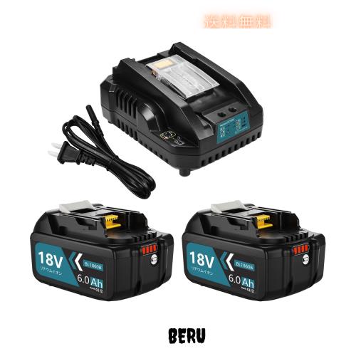 Boetpcr 互換 マキタ 18v バッテリー 充電器セット BL1860B 6000mAh 2個付き 互換 マキタ 充電器 DC18RC付き マキタ バッテリー 18v BL18