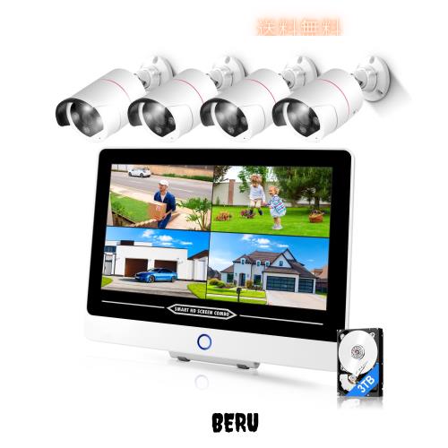 【12インチ一体型親機は外部ディスプレィー要らず】:親機は12インチ液晶モニターと親機が一体になって省スペース化、別途にモニター用意の手間がかかりません。HDMI端子が付いているため、大サイズの外部ディスプレイなどと接続可能です。防犯モニターは800万画素対応、発色が綺麗、5MP/8MPカメラも増設できます。裏面に広い面積で放熱して耐久性が優れています。POE防犯カメラ4台セットですが、8台まで増設、全画面/4分割/8分割画面で視聴・再生できます。ネットワーク環境があれば、スマートフォンやパソコンで遠隔監視出来ます。