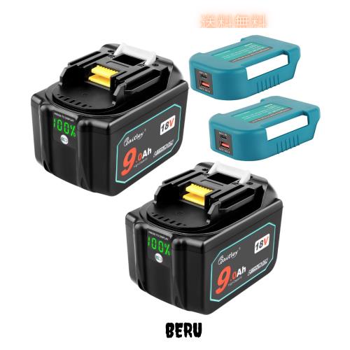 ◆商品名:waitleyマキタ BL1890 9.0Ah互換 バッテリー 2個セット 大容量18Vバッテリー デジタル%残量指示付き 容量9000mAh BL1830 BL1840 BL1850