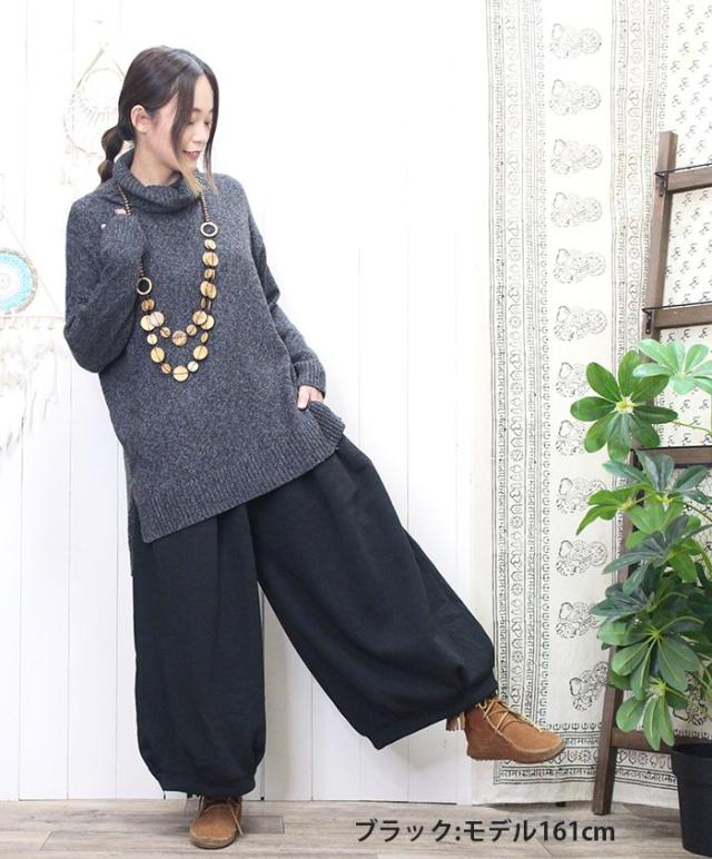 ゆったりと下半身を覆うデザインで体型カバー効果も◎
