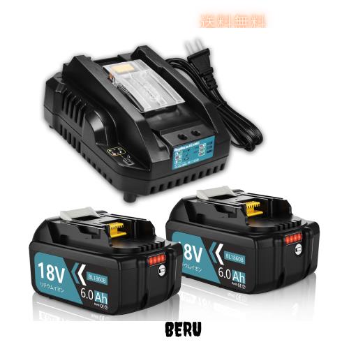 Enermall 互換 マキタ 18v バッテリー BL1860B 2個付き マキタ 18v バッテリー 充電器セット マキタ バッテリー 18v BL1815N BL1820B BL1