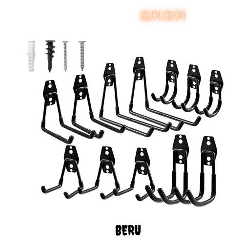 ガレージフック、12パックガレージ収納フックとハンガー、頑丈な壁掛けガレージオーガナイザー、はしご、自転車、ホースなどの道具収納 (