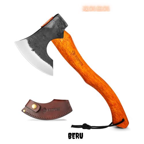 ◆商品名:キャンプ 斧 焚き火 手斧 38cm NEDFOSS マンモス12 鍛造斧 薪割り斧 ブナ柄 専用本革カバー付き おの アウトドア 薪割 枝打ち キャンプ用