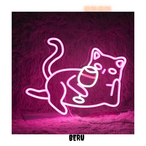 猫のワイングラス:猫のワイングラスのネオンライトは、ピンクと白を組み合わせたユニークで魅力的な照明装飾です。猫とワイングラスのデザインが、やわらかくロマンチックな雰囲気を醸し出しています。単なる照明器具ではなく、アートとクリエイティビティが融合し、人々に無限の驚きと喜びをもたらします。
