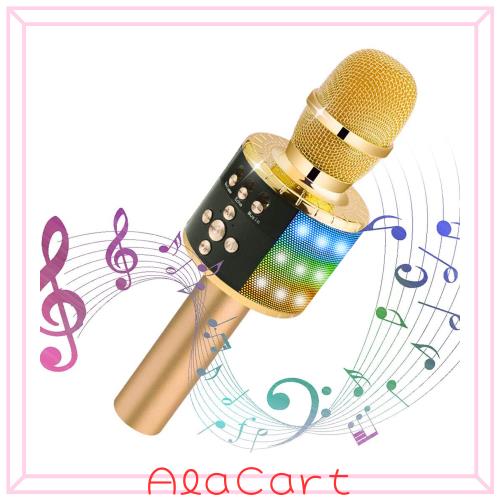 ?【多彩なライトで飾れる】:マイクはカラフルなLEDライトで飾られて、音楽のリズムに合わせてLED色が変化できます。音量が高ければ高ほどマイクのライトがより速く点滅して、素敵で美しい雰囲気を醸し出しことができます。聴覚だけでなく、視覚的にもお楽しみいただます。どこにでも、パーティーを始めることができます!(ご注意:ライトを消した状態で使用できます、ただ「M」ボタンを長押します。)
