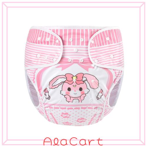 ◆商品名:LittleForBig大人用布おむつカバー 可愛い絵柄【ベビーうさぎ】調節可能なウエストと長さ スナップ付 漏れ防止 通気性 洗濯可 (L)