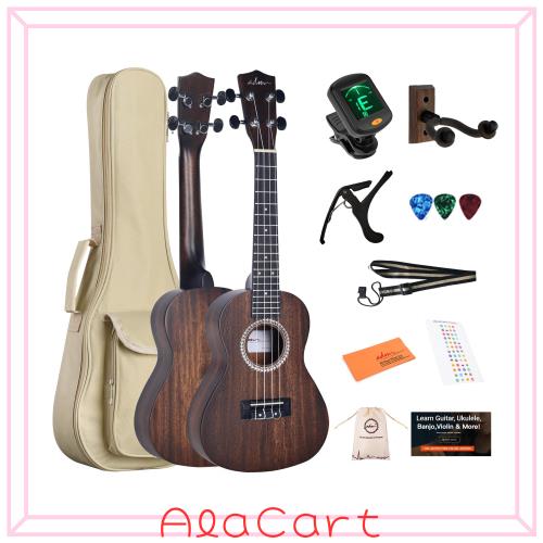 ADM コンサートウクレレキット、23インチ マホガニー 初心者ウクレレセット - ギグバッグ、チューナー、ストラップ、指板ステッカー、ピ