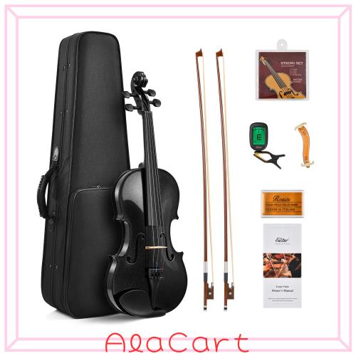Eastar バイオリン ヴァイオリン 4/4 単板 ソリッド バイオリンセット 弓2本 初心者にも上級のバイオリン奏者にも EVA-330 黒