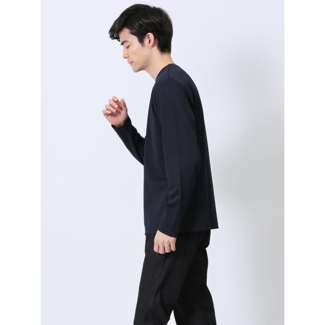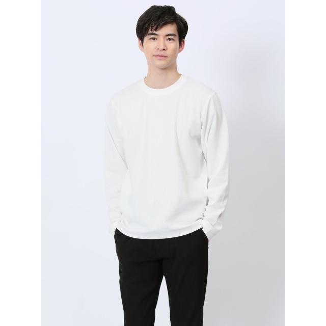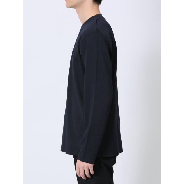 シンプル過ぎない存在感のあるクルーネックの長袖Tシャツです。表面感のあるジャガード柄で着映えするルックスに仕上げています。一枚で着るのはもちろん、ジャケットやシャツ、ベストのインナーとしても便利なアイテムです。