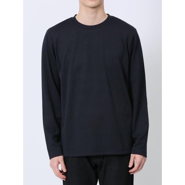 ふくれチェックジャガード クルーネック長袖Tシャツ