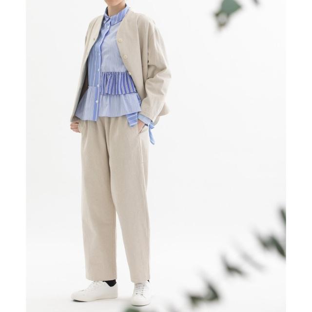 フリルの甘さをキリッとしたシャツディテールで引き締めています。