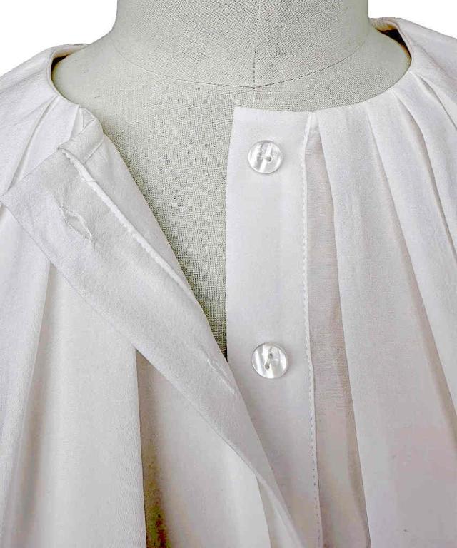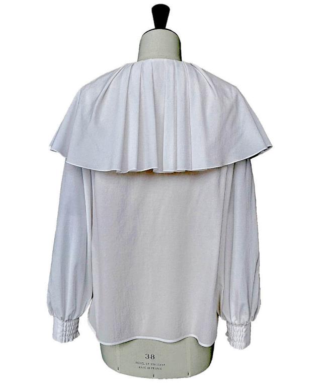 女性らしさ際立つケープカラー。タック入りで甘すぎず、クールさも兼ね備えたブラウスです。