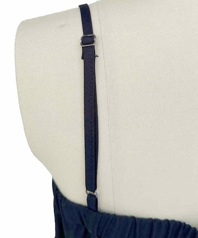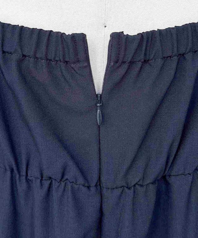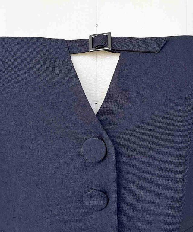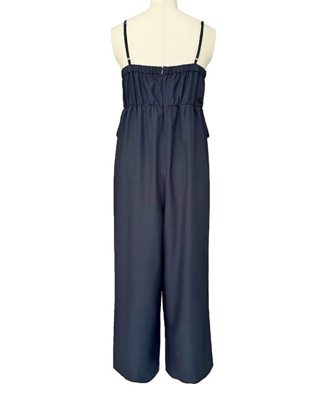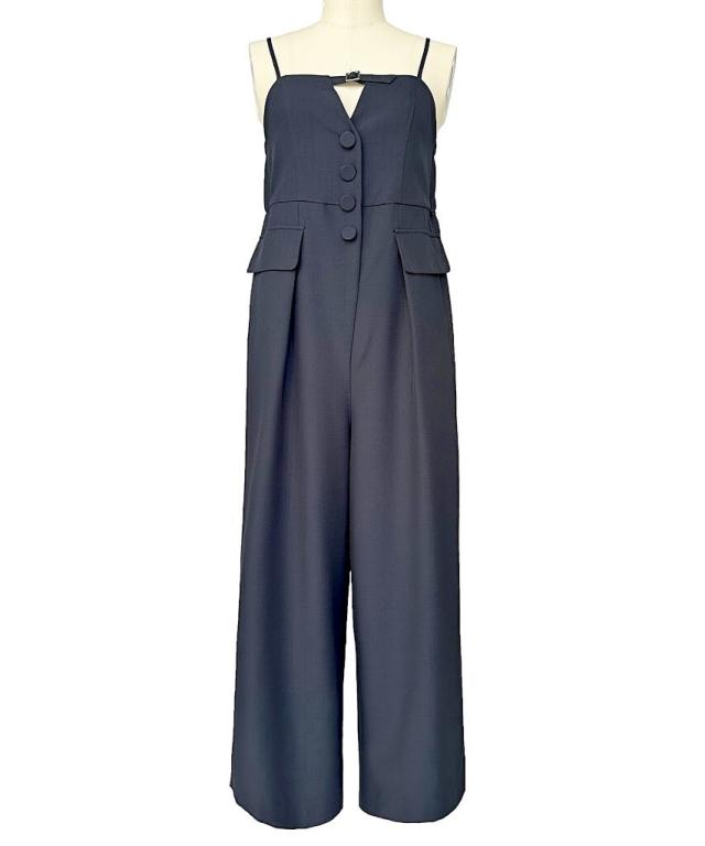 V開き+バックルとくるみボタンがアクセントになった大人きれいなサロペット。