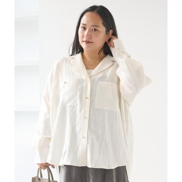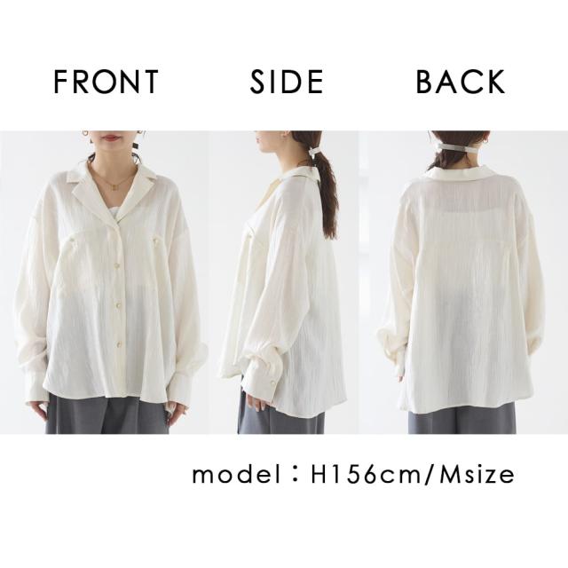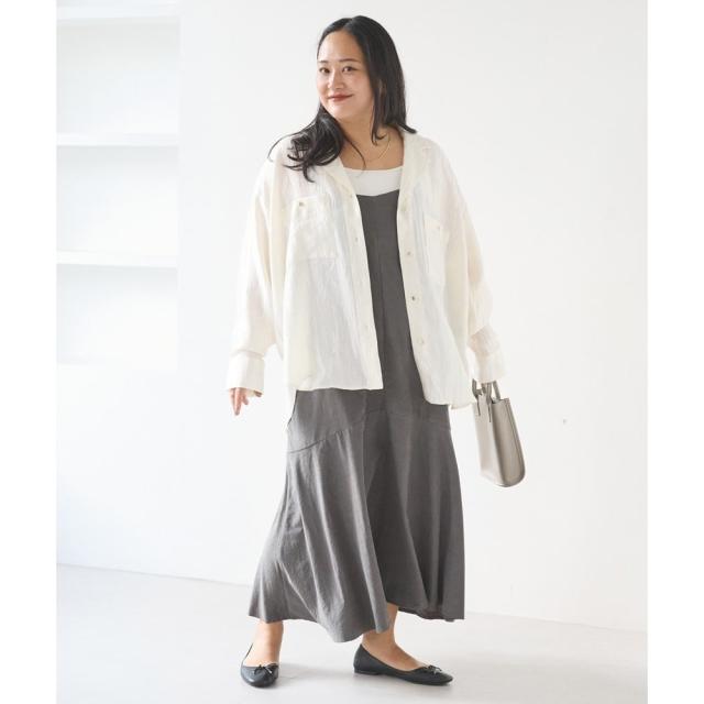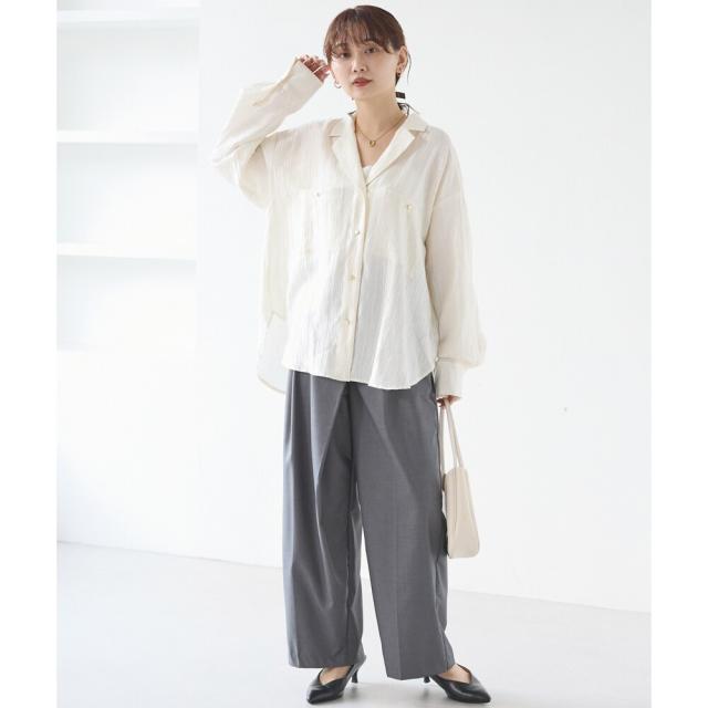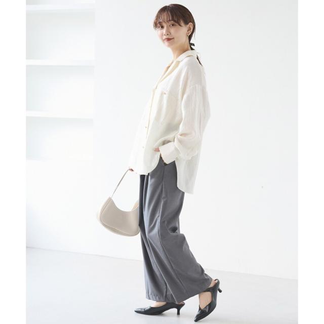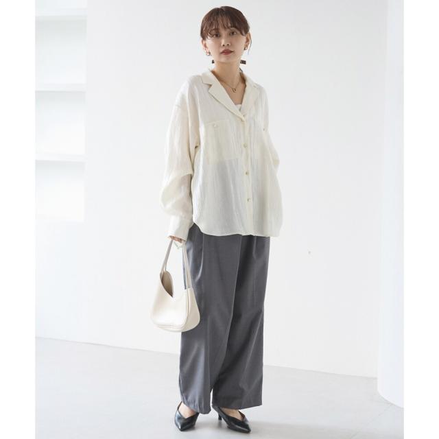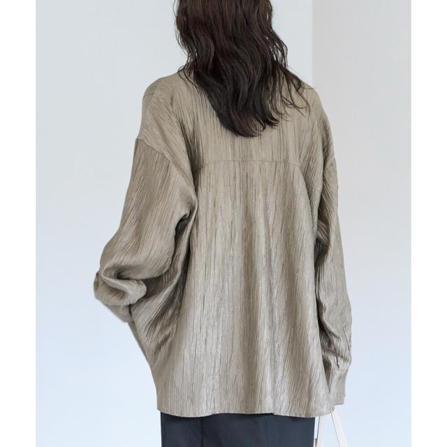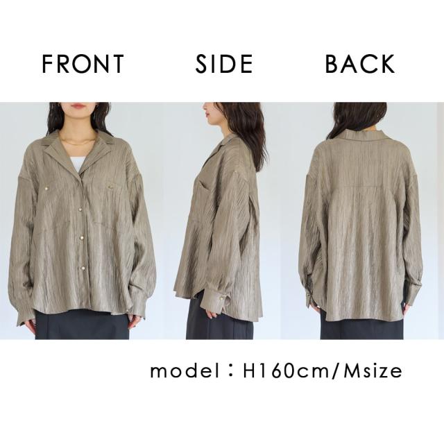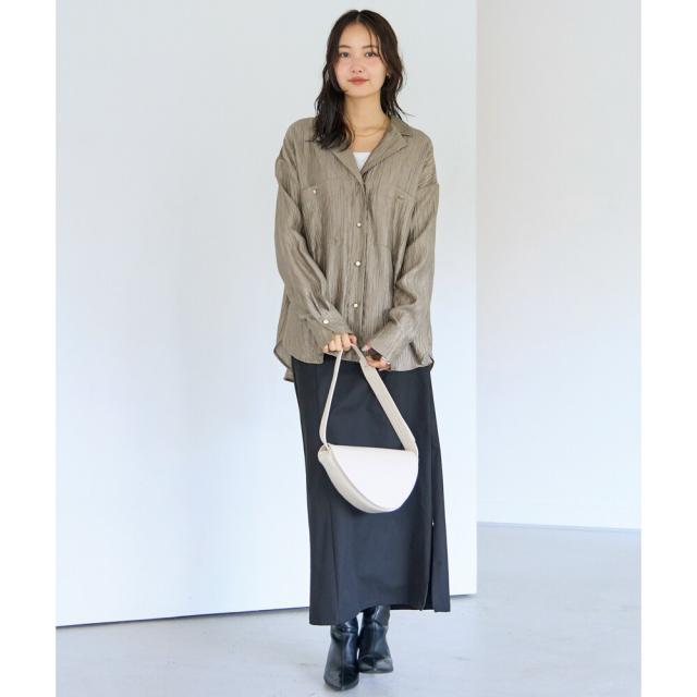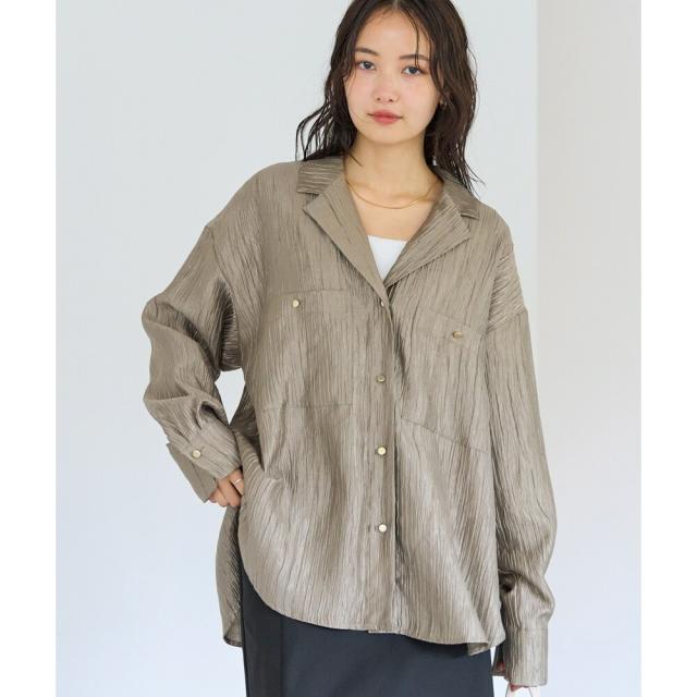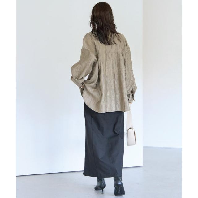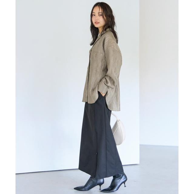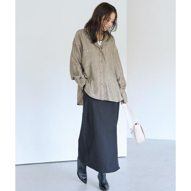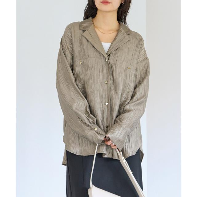 首元を美しく見せてくれる開襟仕様で、抜け感を演出。光沢感のあるサテン生地でキレイめな印象を与えつつ、ボックスシルエットでかっちりとしすぎないのが魅力です。