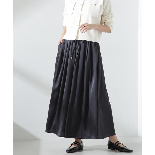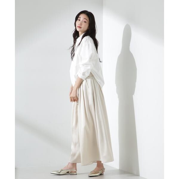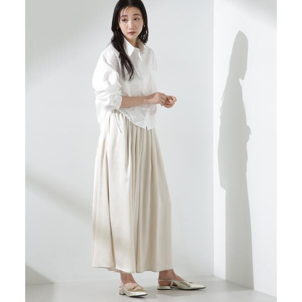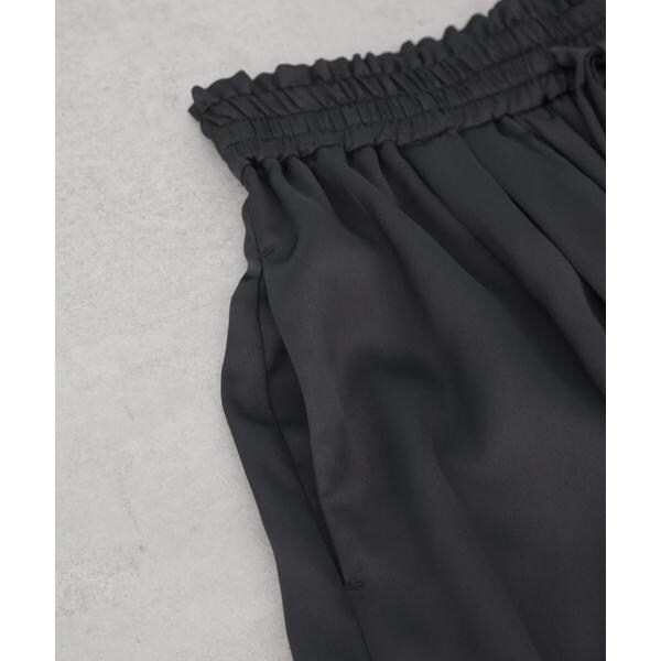 たっぷり生地を使用したギャザーとワイドシルエットがスカートのようなルックスのロングパンツ。程よい光沢と落ち感で、上品なサテン素材が女性らしい印象の一着。軽やかでストレスフリーな履き心地がショッピングや旅行のお出かけスタイルに重宝してくれます。