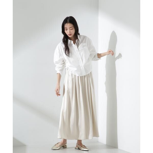 ・ロンTやブラウスの前裾をINして、ウエストのギャザーを見せる着こなしがおすすめ