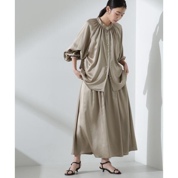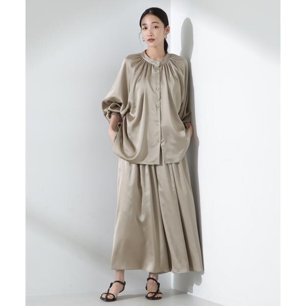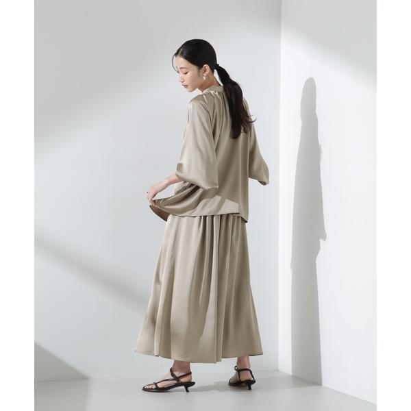 ・6735120308 前後2wayサテンドルマンギャザーブラウス(セットアップ可)