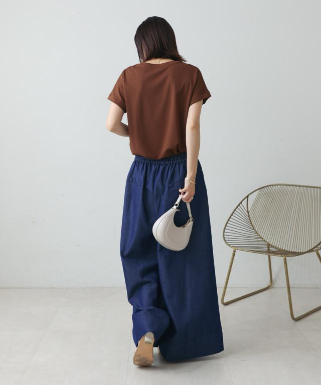 透け感を気にせず着られるのでデイリー使いにもピッタリです。色合わせのしやすいデニムは広がらないシルエットでどんなトップスにも合わせやすく季節の変わり目でも活躍してくれます。