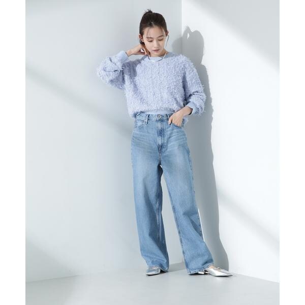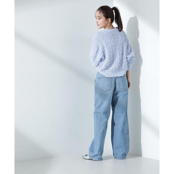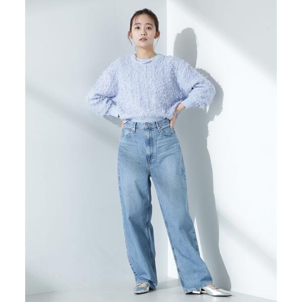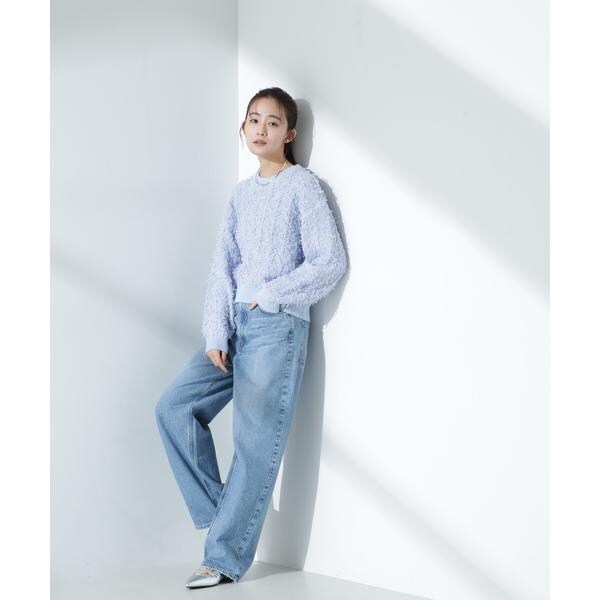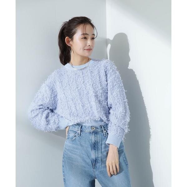 チュールのフサフサした表情が華やかでコーデのポイントとなるニットプルオーバー。冬素材にマンネリ化してきた時期に表情や素材感で新鮮に着られるアイテム。ゆるっとした幅感と短めの着丈が、ワイドパンツやデニムと合わせて春を感じる雰囲気を演出してくれる一枚です。