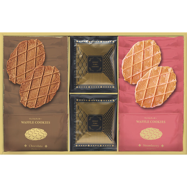 ■商品内容:ワッフルクッキー(チョコ・いちご×各8)、ドリップコーヒー8g×4※商品の特性上、衝撃によって菓子が割れることがございます。